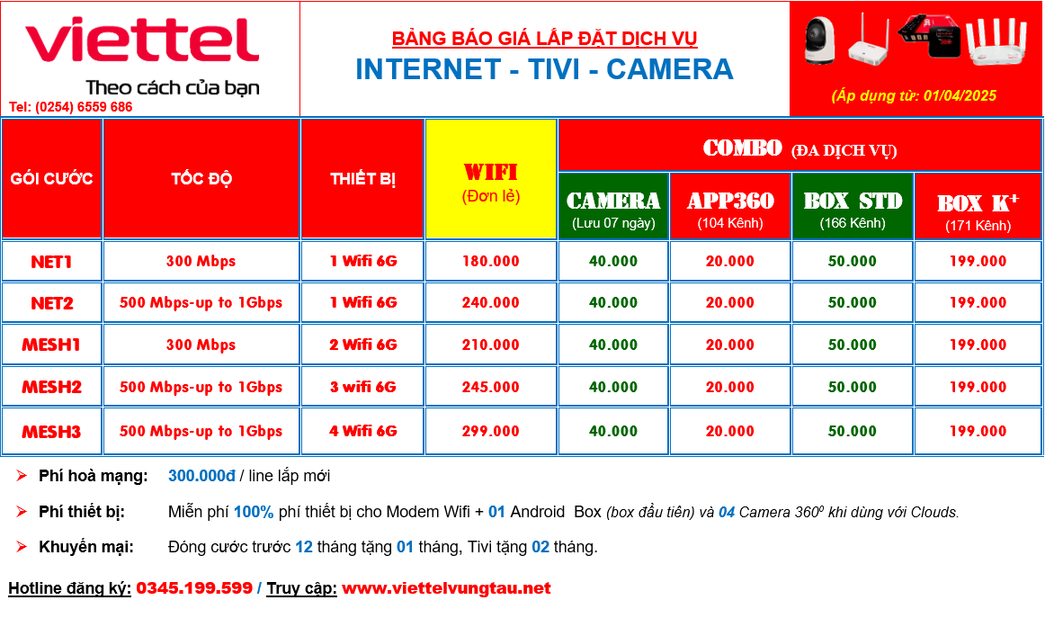 Cụ thể, các khách hàng đang sử dụng gói cước băng thông dưới 300Mbps, sẽ được nâng lên 300Mbps; 300Mbps trở lên sẽ được nâng lên 500Mbps Các khách hàng sử dụng băng thông từ 500Mbps trở lên đều được mở không giới hạn (lên đến 1Gbps); và cam kết tối thiểu 300Mbps-400Mbps tùy gói cước. Việc nâng cấp này Viettel thực hiện tự động, khách hàng không phải khởi động lại thiết bị tại nhà.